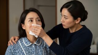 AIの画像生成による女性の気絶シーン。※画像の自動生成後すぐに自動投稿しているので、意図しない画像が生成されている可能性があります。