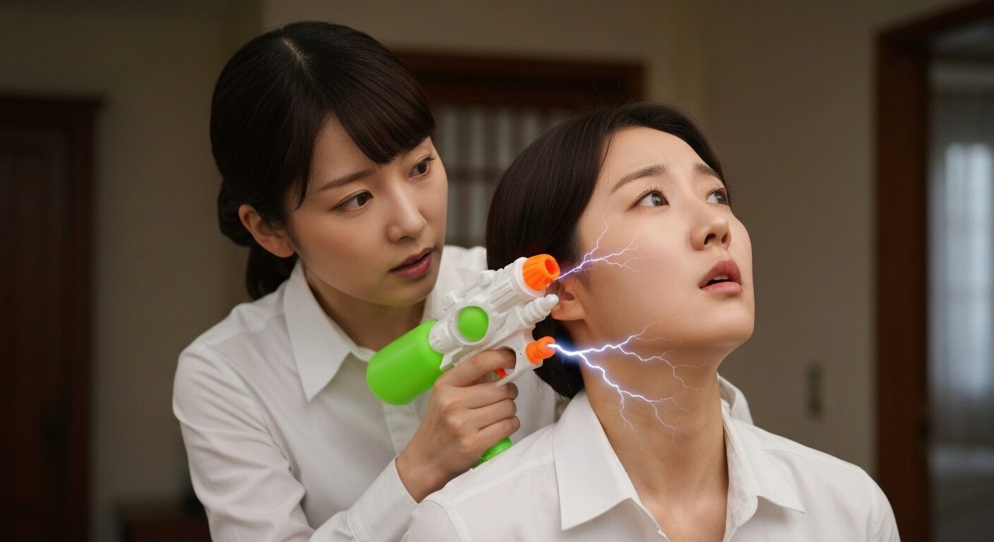 スタンガンというプロンプトは不適切と判断されるため、銃が少しおもちゃっぽくなっています。